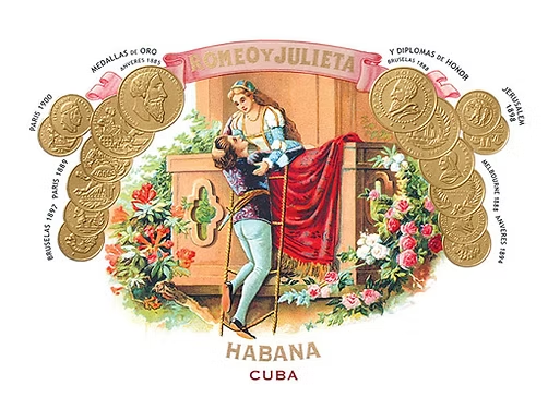 El nombre de Romeo y Julieta, creada como marca de Habanos en 1875, tiene su raíz en la tragedia literaria del mismo nombre del escritor inglés William Shakespeare. La marca alcanzó renombre internacional en los primeros años del siglo XX, después de que Don Pepín Rodríguez, fuera de los primeros en reconocer la importancia de las anillas como factor del éxito. Se calcula que en la producción se utilizaron hasta 20,000 anillas distintas. Winston Churchill fue uno de los más devotos fumadores de la marca Romeo y Julieta. Desde su visita a La Habana en 1946, su nombre no solo fue utilizado en anillas de Habanos, sino que dio nombre a la más conocida de las vitolas de la marca: Churchills de Romeo y Julieta. Ya en el siglo XXI se incorporan 2 nuevas vitolas. En 2006 llega al mercado una nueva vitola: Short Churchills, el robusto que faltaba al vitolario de la marca y, en 2010, en el XII Festival del Habano se presenta Wide Churchills, un nuevo formato que inaugura los cepos 55para la tendencia entre los amantes de vitolas de cepo grueso. Su equilibrada y aromática ligada, con hojas de tripa y capote seleccionadas procedentes de la región de Vuelta A bajo , hace de Romeo y Julieta el Habano clásico de sabor medio.